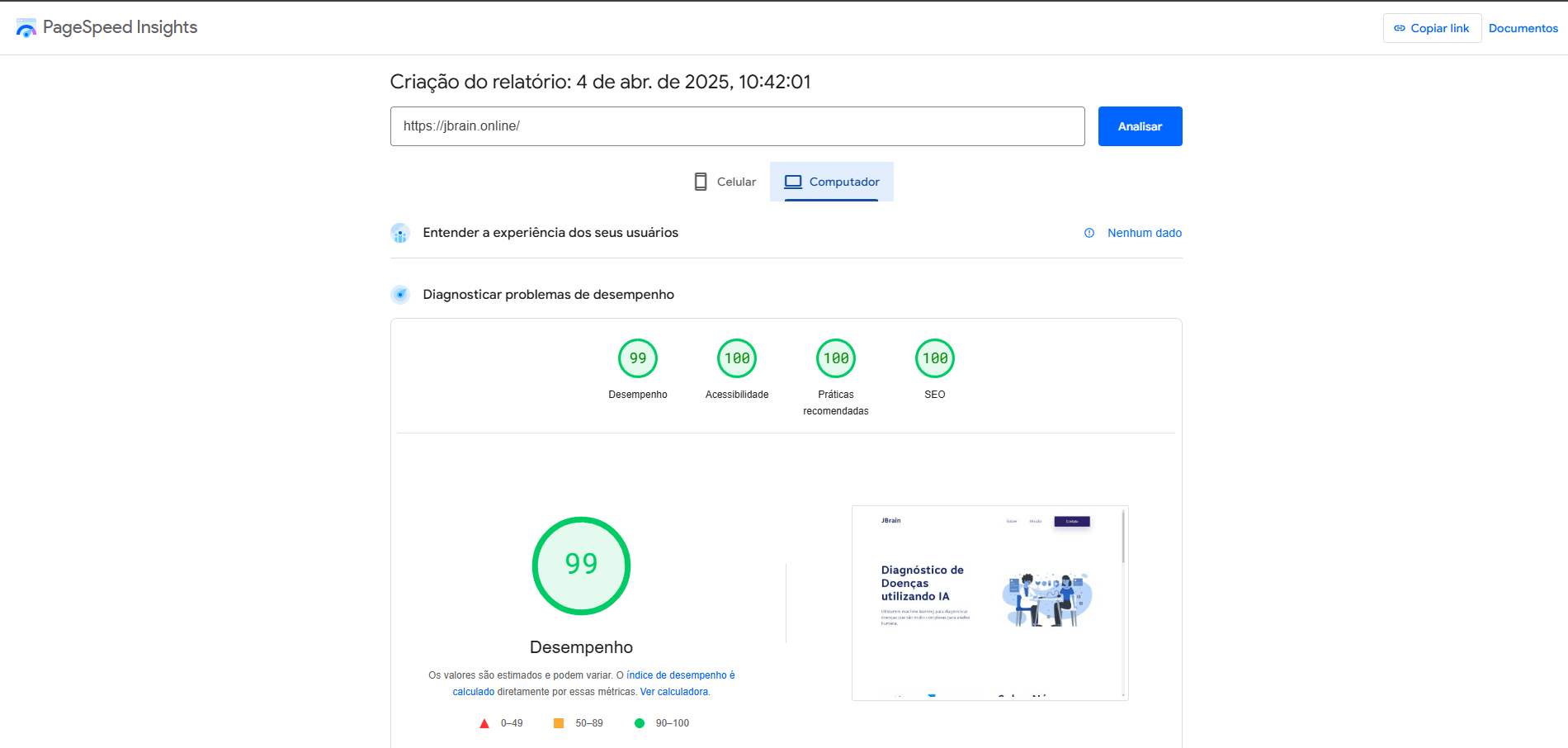 Ter um site com excelente desempenho não é mais um diferencial — é uma necessidade. Todos os projetos que desenvolvo são pensados para alcançar as melhores notas no PageSpeed e GTmetrix, garantindo velocidade, estabilidade e excelente experiência para o usuário. Isso significa carregamento rápido em qualquer dispositivo, melhor posicionamento no Google e mais conversões para o seu negócio. Se você está procurando um desenvolvedor de sites que entregue resultados reais, com foco em performance, SEO técnico e boas práticas de desenvolvimento web, você está no lugar certo. Utilizo tecnologias modernas como WordPress otimizado, React, Tailwind, além de estratégias avançadas para garantir que seu site atenda aos padrões mais exigentes de qualidade. Sites rápidos vendem mais, geram mais confiança e posicionam melhor. Vamos criar o seu? Entre em contato e garanta um site profissional, rápido e preparado para crescer junto com o seu negócio.